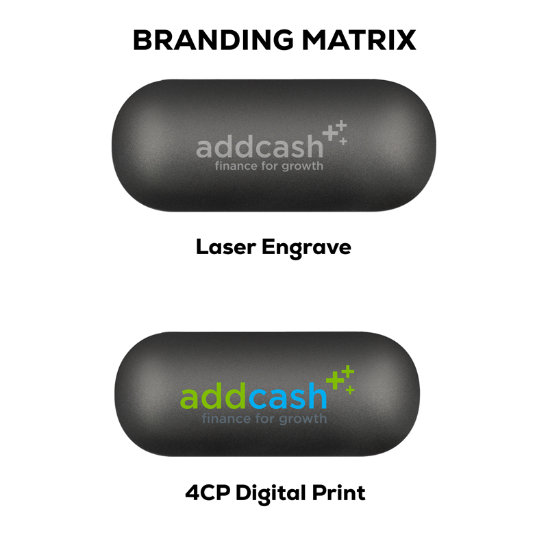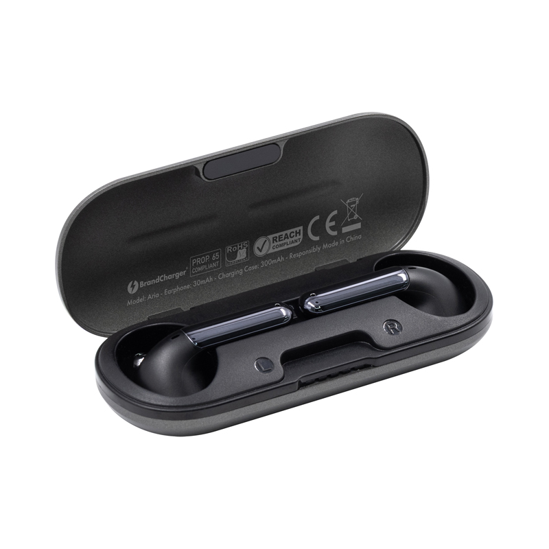 Features: Aria True Wireless Earbuds â?? Sound That Moves With You! Featuring industry-leading sound quality and Environmental Noise Cancellation (ENC), the Aria TWS offers a premium wireless listening experience. Feel every beat with powerful 13mm dynamic drivers that produce rich, immersive soundâ??enjoy deep bass, clear mid-tones, and crisp highs. Perfect for music, podcasts, or calls. Provides up to 4 hours of playback on a single charge, with an extra 12 hours from the sleek charging case. Lightweight, sweat-resistant, and designed for all-day comfortâ??ideal for workouts, commutes, or relaxing at home. Tap controls allow easy management of audio and calls. Bluetooth 5.4 guarantees fast, stable connections between devices. Aria â?? Bold sound. Your world, your soundtrack. Includes a Type-C charger cable, charging case, and downloadable user manual. Material: Metal Alloy. Certification: CE, FCC, ROHS, FSC, MSDS, UN38.3. Colours: Gun Metal. Product Size: 88 x 35 x 20 mm (charging case), 38 x 18.5 x 16 mm (earbuds). Branding Area: 33 x 14 mm (laser), 50 x 14 mm (4CP digital print). Standard Packaging: Brand Charger Design Box (88 x 120 x 37 mm). Price includes: 4CP Digital Print. Setup is included.