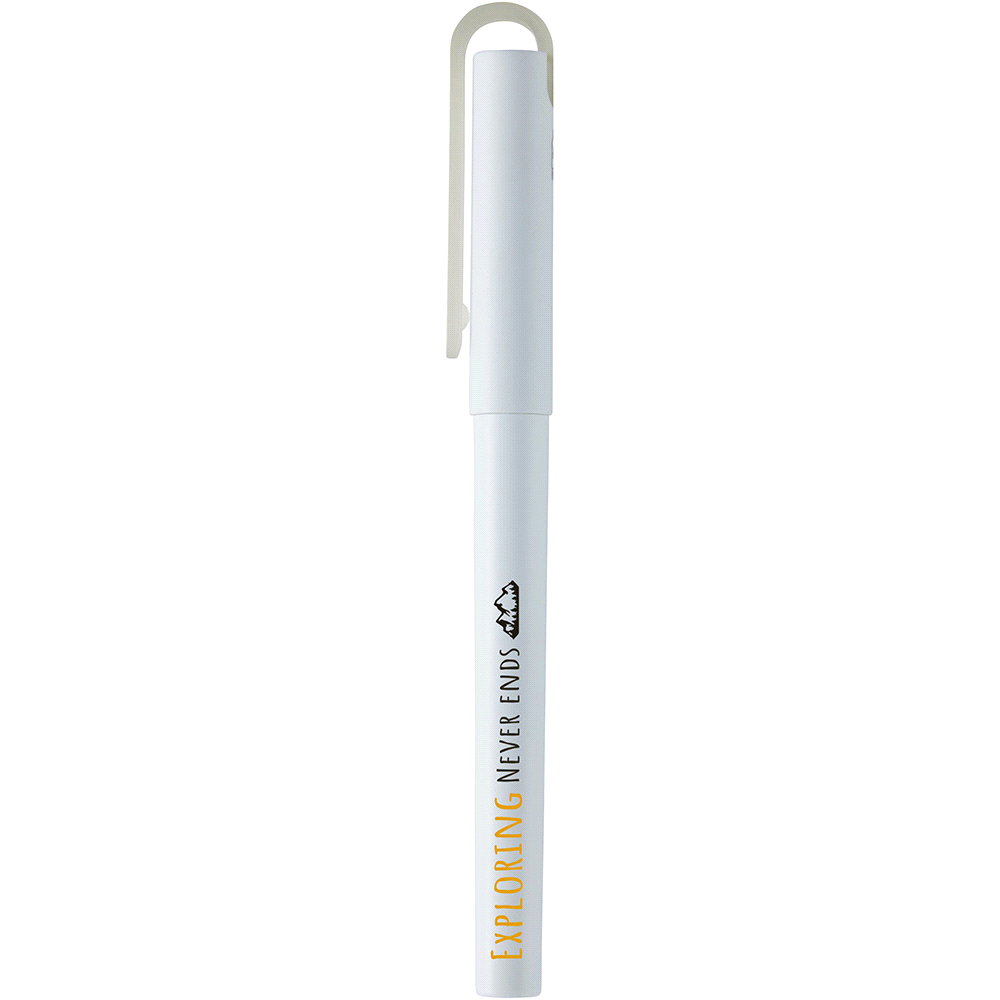 Eco Friendly Product. Rollerball pen made from recycled PET plastic, reducing the use of virgin plastic. The ink in a gel pen is a combination of water-based and oil-based components, which gives it a smooth and consistent flow that is comparable to a fountain pen. This type of ink is also known for its resistance to fading, making it a popular choice for artists and writers alike. Gel pens typically have a fine tip that allows for precise and controlled writing. Colours: Red, Royal Blue, Solid Black and White. Sizes: 12mm(w) x 143mm(h). Features: Black Ink Gel Pen. Packaging: Bulk. Materials: Recycled PET Plastic. Price includes: NI Printshop - Print 1 Colour Only Per Position. NI Printshop - Print 1 Colour Only Per Position. Setup is included.